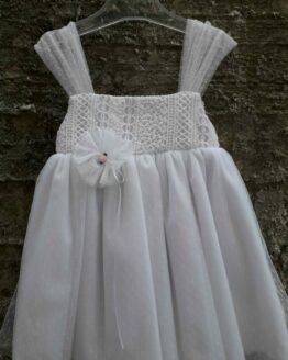 Ρομαντικό χειροποίητο βαπτιστικό φόρεμα με κλασσικές λεπτομέρειες.Ο σχεδιασμός μας είναι κομψός, χαριτωμένος και διαχρονικός.